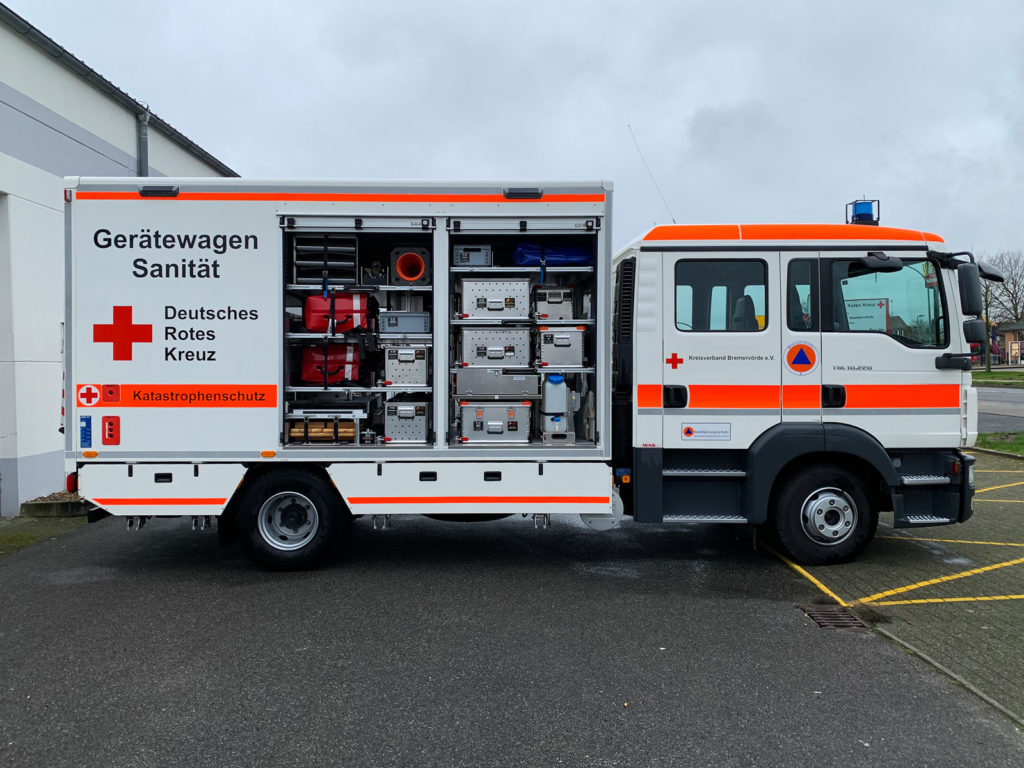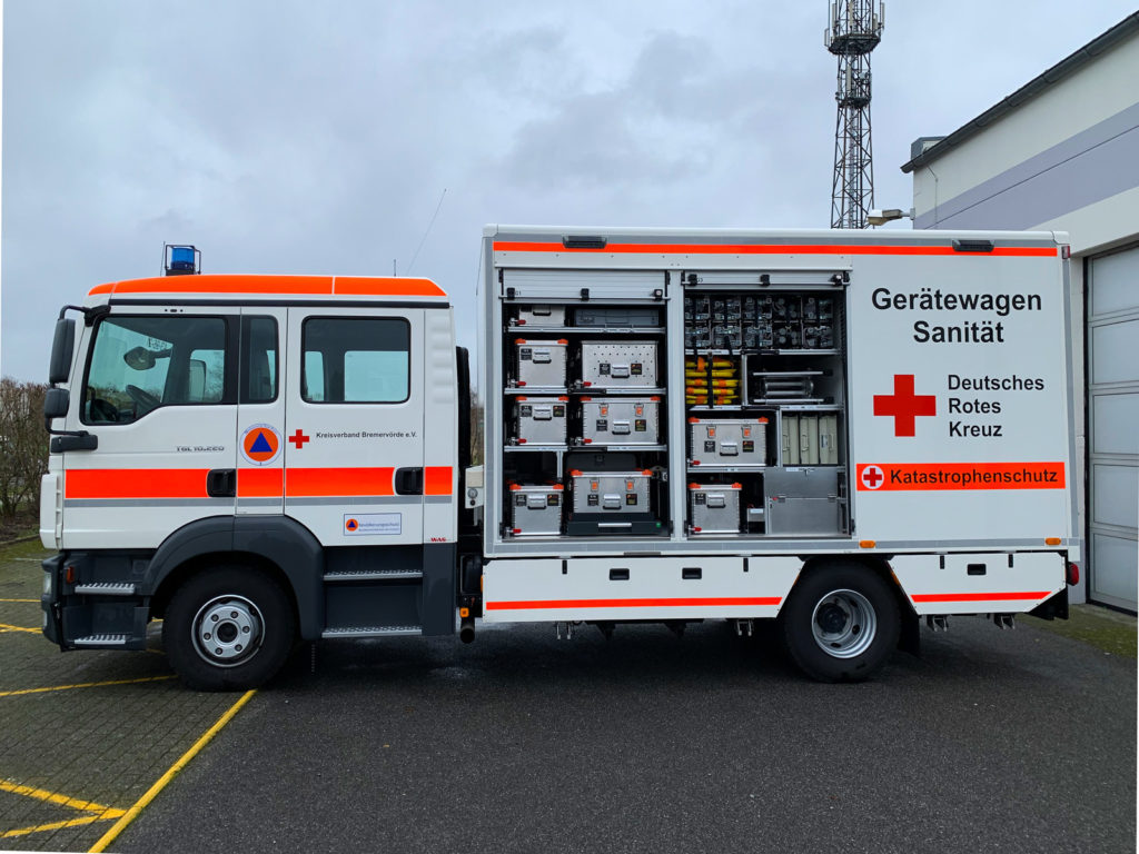 Seit heute befindet sich in unseren Hallen ein neues Fahrzeug: Der Gerätewagen Sanität der Medizinischen Task Force des Bundesministeriums des Inneren.