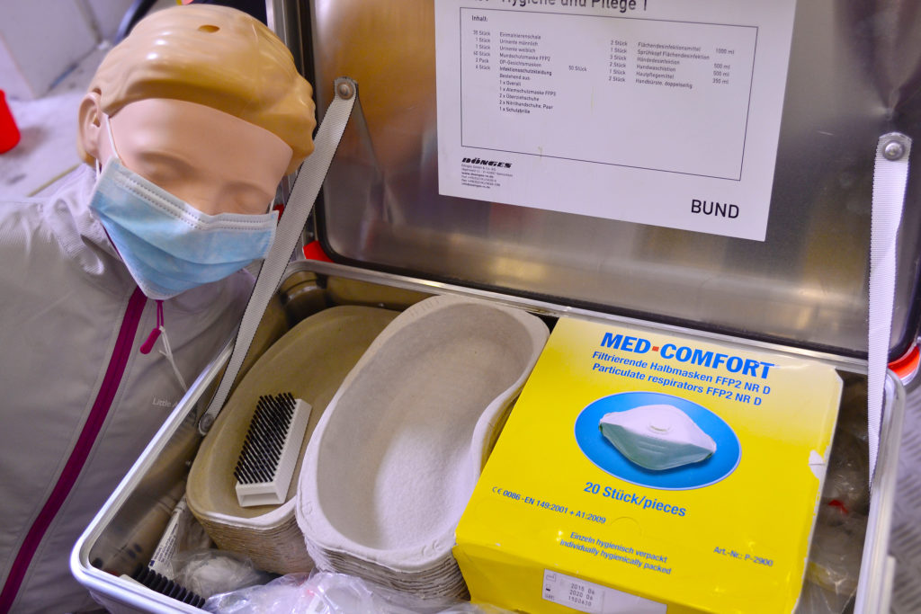 Die Kisten „Hygiene und Pflege A+B“ beinhaltet nebst Infektionsschutzkleidung, Mundschutz, Desinfektionsmittel auch Pflegelotionen, mobilen Urinalen und Nierenschalen. Es findet Einsatz, um vielfältige Anwendungsgebiete im Bereich der Hygiene, Pflege und dem Infektionsschutz abzudecken. ☣️⛑️