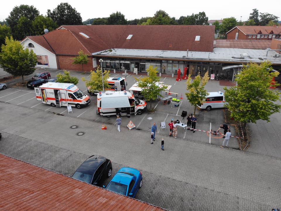 Die DRK Bereitschaften Zeven und Bremervörde, wurden durch den Verein Zukunft Börde Sittensen e.V. eingeladen am Entdeckerabend 2021 teilzunehmen. Diese Einladung nahmen wir gerne an und folgten mit 4 Einsatzfahrzeugen und 9 Einsatzkräften.Vor Ort konnten wir als DRK Bereitschaft Zeven unseren Mannschaftstransportwagen (MTW) Sanität inkl. dem Geräteanhänger-Sanität (GA-SAN), unseren Einsatzleitwagen 1 (ELW 1) sowie unseren Schnelle-Einsatz-Gruppe Rettungswagen (SEG-RTW) vorstellen. Die DRK Bereitschaft Bremervörde stellte zudem das Mehrzweckfahrzeug (MZF) Lufterkundung vor. Hier konnten sich Klein und Groß über unser Portfolio informieren, einen Rettungswagen von innen erkunden und mit unserer mobilen Krankenfahrtrage eine Runde um die Fahrzeuge drehen.Des Weiteren konnte sich darüber Informiert werden, welche Einsatzbereiche wir mit unserem MTW-San in Kombination mit dem GA-SAN aber auch mit dem MZF Lufterkundung abdecken können aber auch welche weiteren Einsatzmöglichkeiten bestehen.