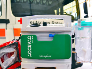 Vakuum-Absaugpumpe um Ansammlungen von Blut und Sekreten abzusaugen und Vakuummatratzen zu evakuieren.