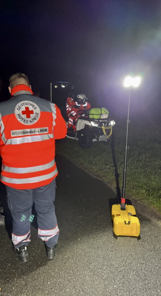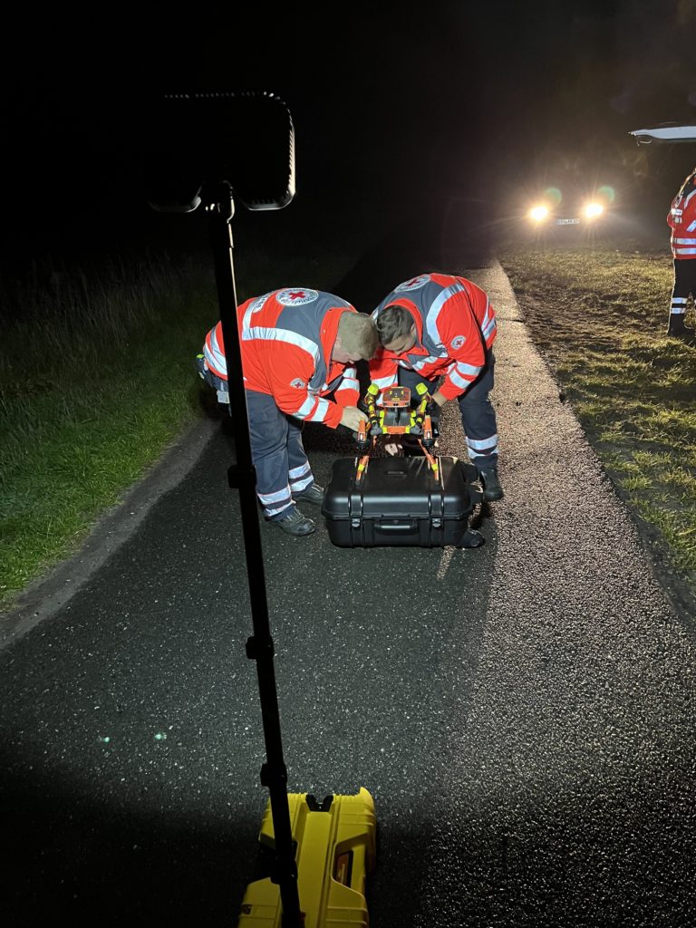 Am Donnerstag kam es gegen 22:00 Uhr zu einer Alarmierung der Drohnenstaffel. Für uns ging es nach Ahausen um dort die Polizei bei einer Personensuche zu unterstützen. Vor Ort haben mehrere Anwohner Hilfeschreie gehört, da aber unklar war, von wo diese genau kommen, entschied sich die Polizei unsere Drohne zum Erkunden der Flächen einzusetzen. Glücklicherweise ist an diesem Donnerstag auch unser Dienstabend gewesen, sodass das Fahrzeug innerhalb weniger Minuten ausrücken konnte. Vor Ort angekommen, wurden wir durch unseren Zugführer in die Lage eingewiesen und setzten den Auftrag zügig um. Neben der Drohne wurde auch das ATV aus Zeven eingesetzt um unsere Suchgebiete schnellstmöglich abzuarbeiten. Die Suche verlief allerdings ohne Befund, sodass wir die Suche gegen 01:00 Uhr beendeten.