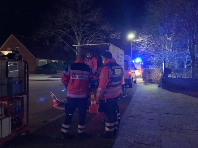 Am späten Samstagabend kam es zu einem Feuer in einem Bremervörder Mehrfamilienhaus. Nach ersten Informationen befanden sich noch mehrere Personen in diesem betroffenen Gebäude. Sofort wurde seitens der Rettungsleitstelle Zeven ein Großaufgebot an Feuerwehreinsatzkräften sowie mehrere Rettungswagen und Notärzte zu der Einsatzstelle geschickt. Vor Ort stellte sich die Lage dann sehr unübersichtlich dar, dass seitens der ersteintreffenden Rettungsmittel eine Alarmstufen-Erhöhung auf einen „Massenanfall von Verletzten und Erkrankten“ (abgekürzt „ManV“) ausgelöst wurde. Hierbei kam es dann zu dem Vollalarm für die Schnelleinsatzgruppen Rettung Nord und Mitte, die dann zügig drei weitere Rettungswagen besetzen konnten. Währenddessen wurden immer mehr Betroffene an der Einsatzstelle registriert und von den Kräften vor Ort gesichtet, versorgt und ebendiese auch in umliegende Krankenhäuser transportiert. Die Anzahl der Betroffenen stieg weiter an, sodass die Alarmstufe vom Organisatorischen Leiter Rettungsdienst (OrgL) auf ManV 15 erhöht wurde. Hier kam es dann zu dem Vollalarm für den DRK-Einsatzzug Rotenburg (Wümme) sowie zu einem Alarm für die SEG-Rettung Süd, die sich dann mit vier Rettungswagen auf den Weg nach Bremervörde machte.