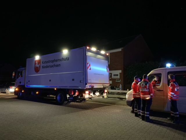 Alle Einsatzkräfte fuhren zunächst einen Rettungsmittel-Halteplatz in der Feldstraße Bremervörde an und wurden nacheinander von dort abberufen. Der DRK-Einsatzzug übernahm den Aufbau und Betrieb einer Notunterkunft in dem Gemeindehaus, welches sich in der Straße Neues Feld befindet. Hierhin wurden alle unverletzten Betroffenen mittels Mannschaftstransportwagen der Feuerwehren verbracht und von unseren Einsatzkräften registriert und betreut. Dank des komplexen Hilfeleistungssystems des DRK konnten wir auch mitten in der Nacht die Türen des bei uns angesiedelten Kleidershops öffnen und so auch auf die schnelle die Betroffenen mit angemessener, warmer Kleidung ausstatten. Ebenfalls wurden im Hintergrund durch das DRK Hotels organisiert in denen die Betroffenen unterkommen konnten. An dieser Stelle ein großes Danke an den Selsinger Hof und das Hotel Daub! Wir möchten an dieser Stelle allen eingesetzten Kräften für die gute Zusammenarbeit danken und sind froh, dass es allen Verletzten und Betroffenen den Umständen entsprechend gut geht!