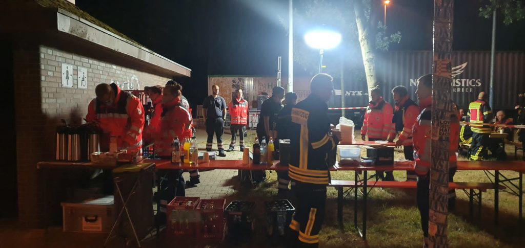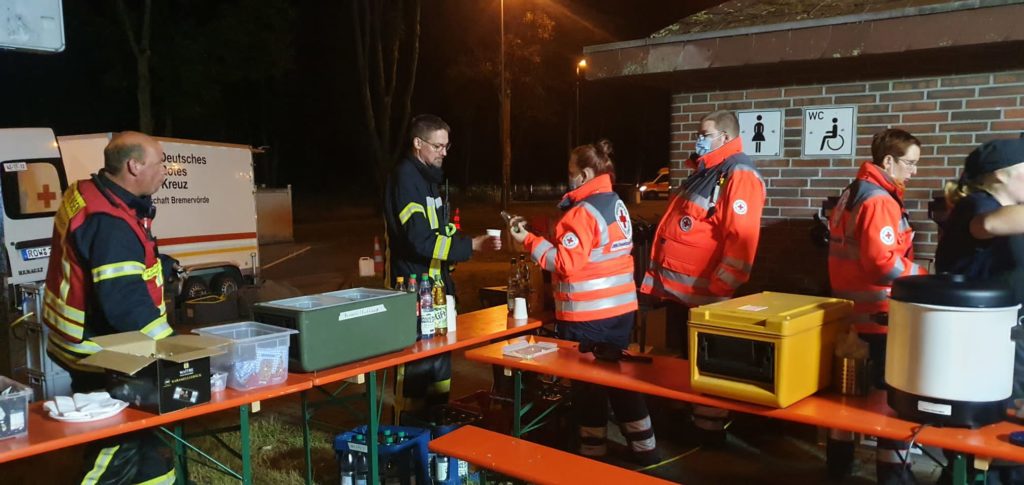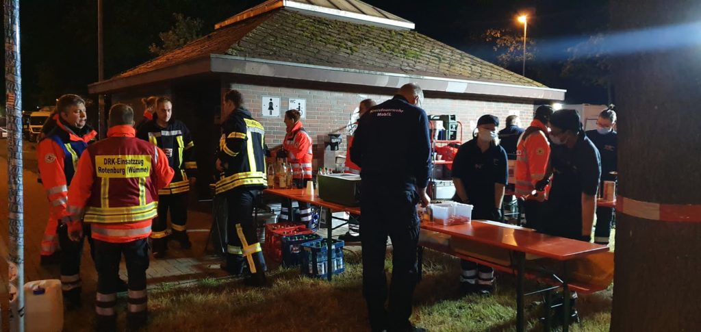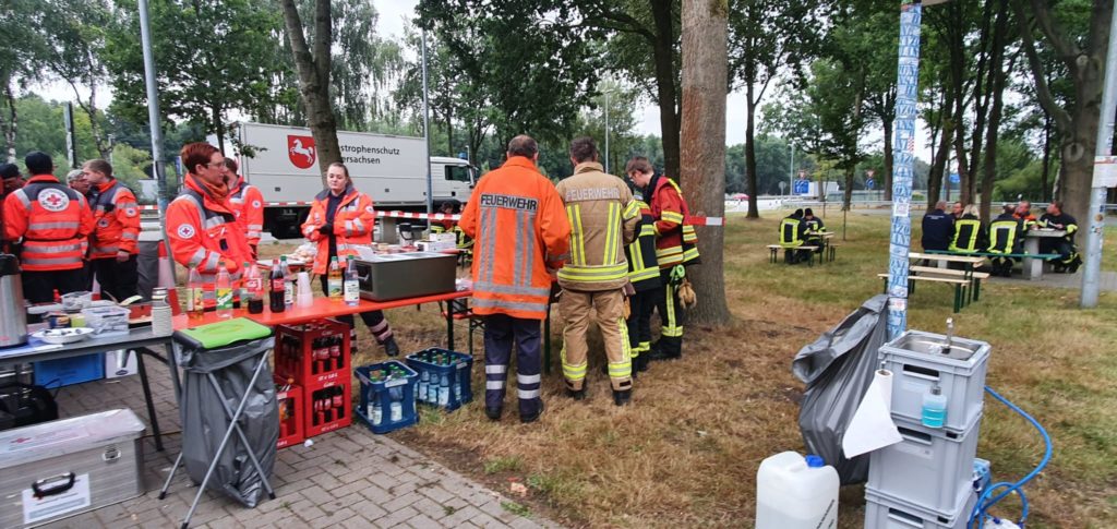 Die in Zeven stationierte Feldküche kochte für den lang andauernden Einsatz mehrfach Gerichte und stellte so die Versorgung der Einsatzkräfte sicher.